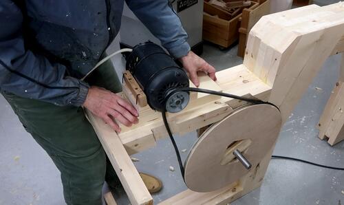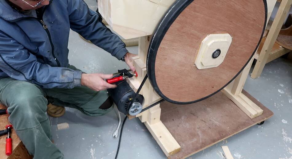 Checking the motor mount on the bandsaw frame.