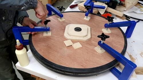 some small pieces of plywood right over where the internal spokes are in