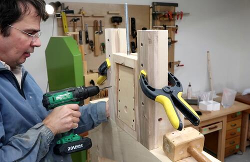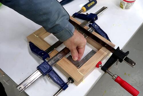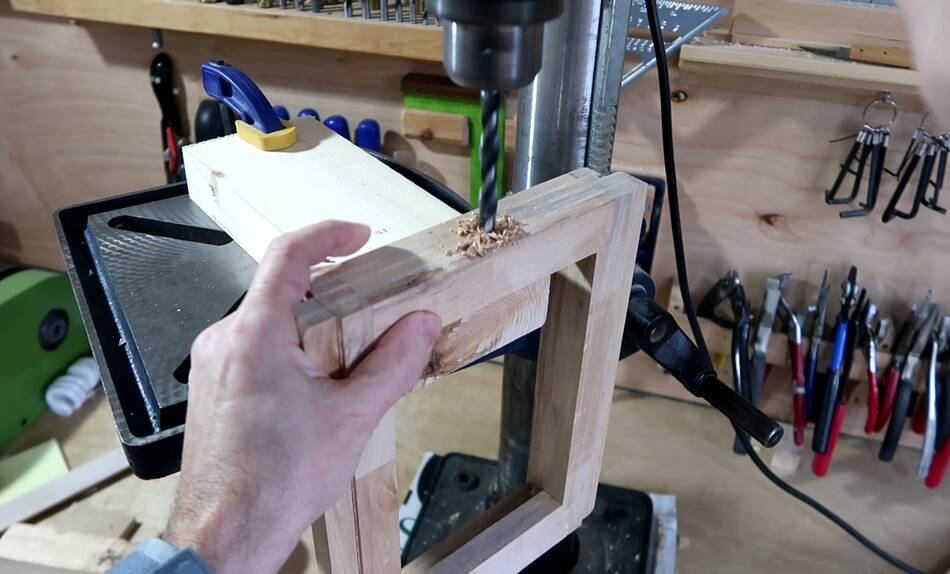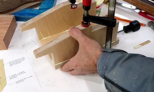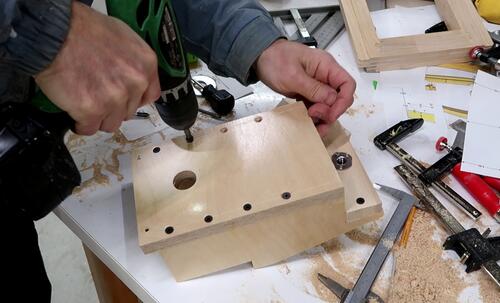 attach the plywood into the rabbet ledge of the frame. I drilled pilot holes
