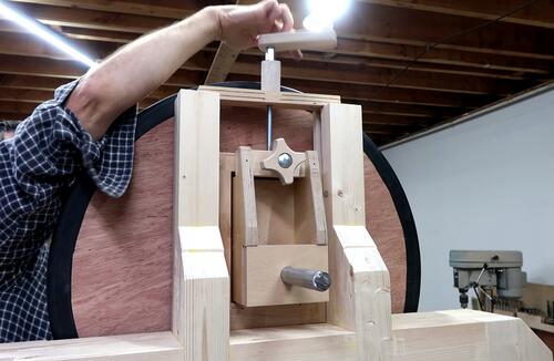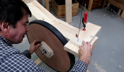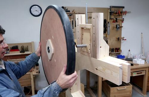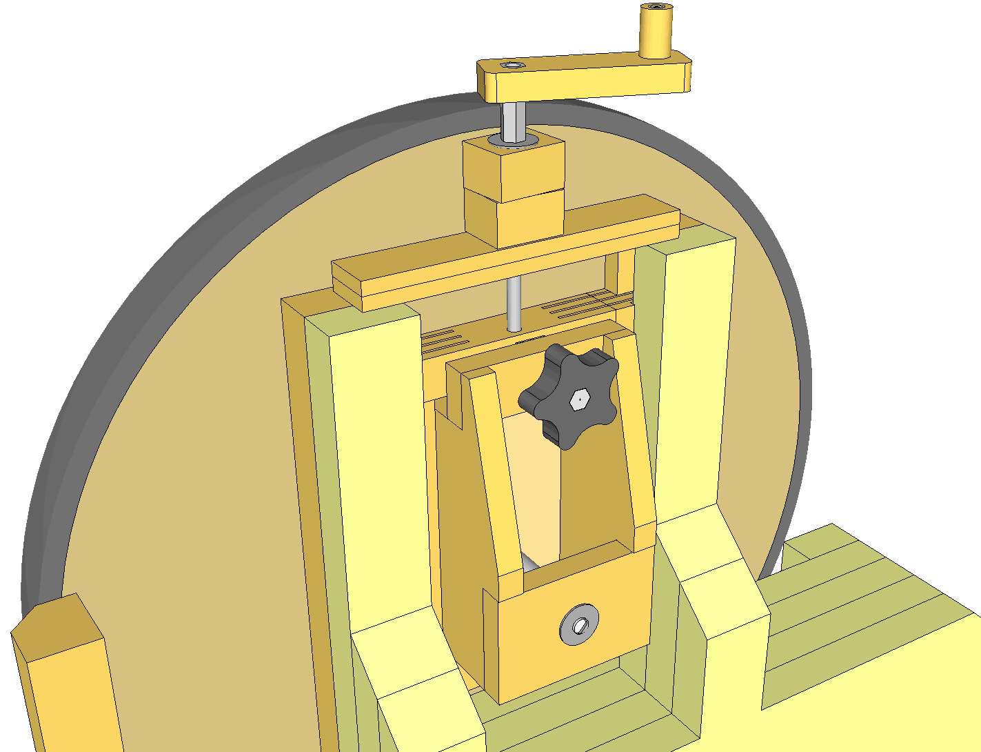 I stuck a knob in the lower wheel and cranked it up, making my first