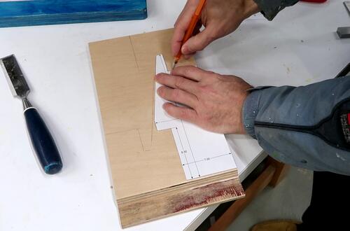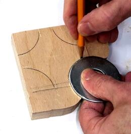I hadn't yet made templates for these for the plans, so I just drew a square and used a washer to mark the corners.