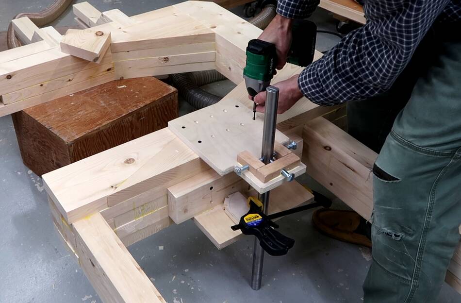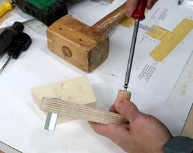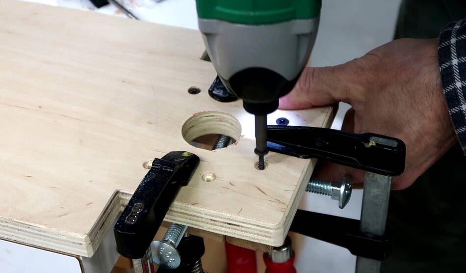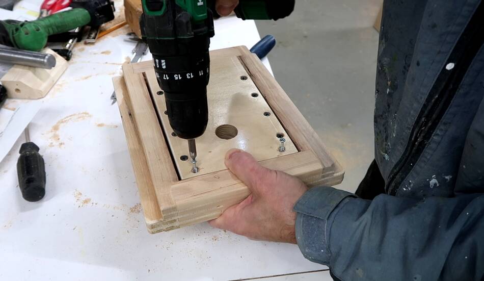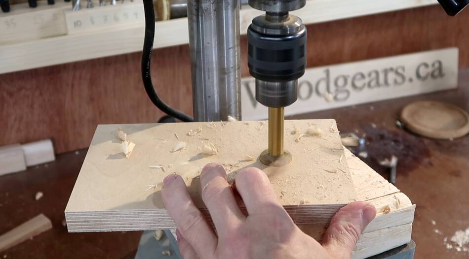 of a block with a 3/8" hole in it to prevent the plywood from chipping
