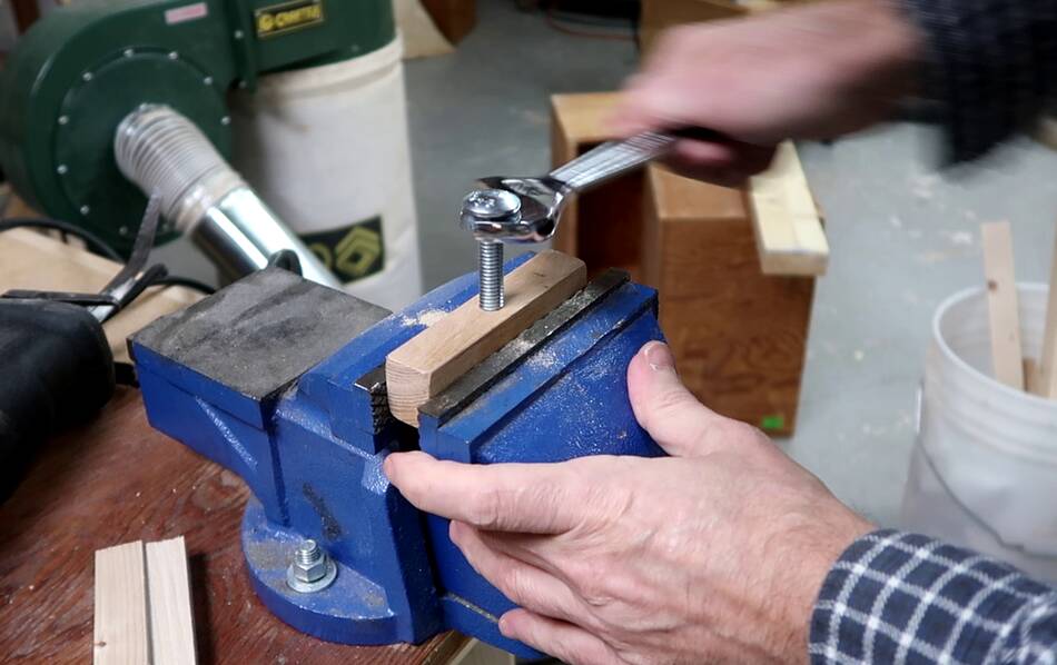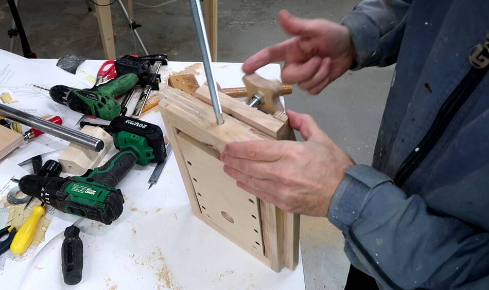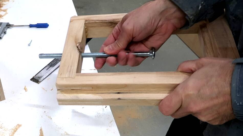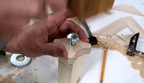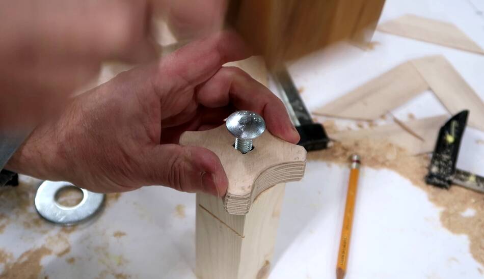 I drilled and tapped some blocks of hardwood to fit carriage bolts. But I didn't tap the thread all the way through, instead drilling the end of the hole just smaller than the bolt, so that the bolt goes in the hole with a lot of friction.