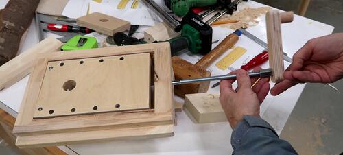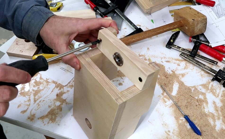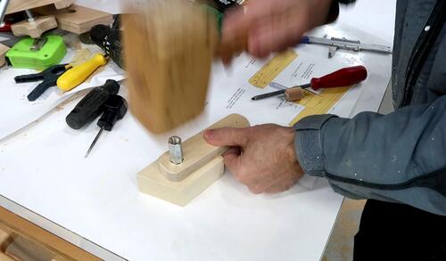 Inserting the threaded knob I made earlier. This pushes the top of the