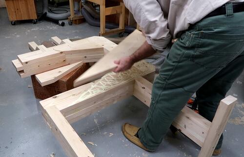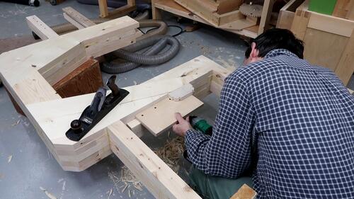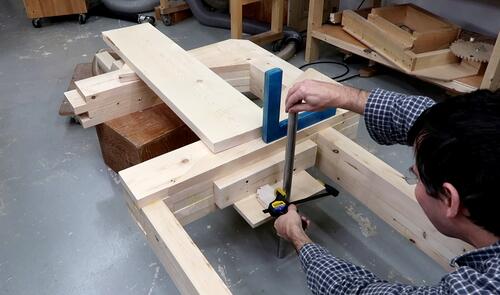 frame, so I made this bracket out of plywood and a piece of 2x4. I made
