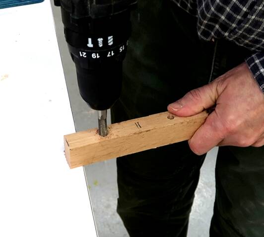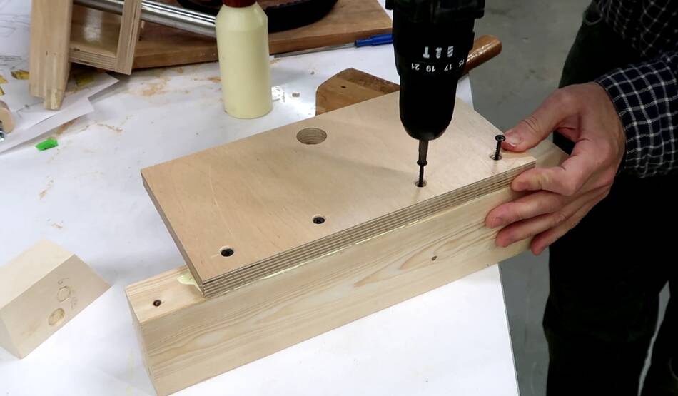 Then using the two angled holes I drilled in the plywood part much earlier to