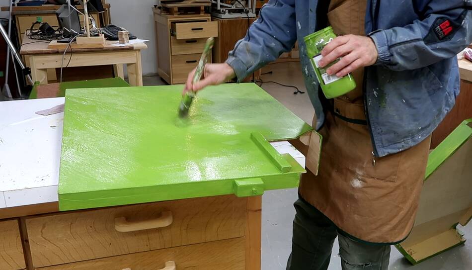 I paint my machines green because the wooden colour just doesn't visually contrast enough from all the other wooden things in my shop or the workpieces. Also, I don't care to emphasize that my bandsaw is made of wood. Primarily it's a bandsaw, wooden is secondary.