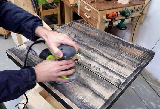 So I started sanding it, but the table isn't totally even, so that didn't look great either.