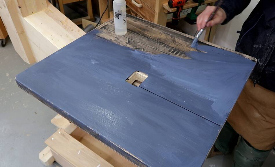 I put two coats on the whole saw, but more coats around the bottom wheel to
