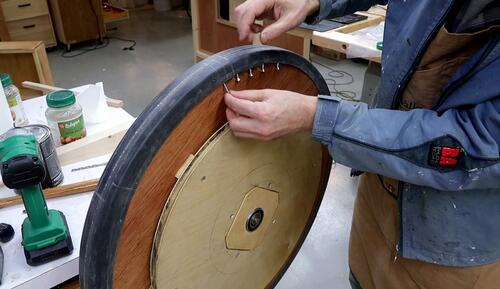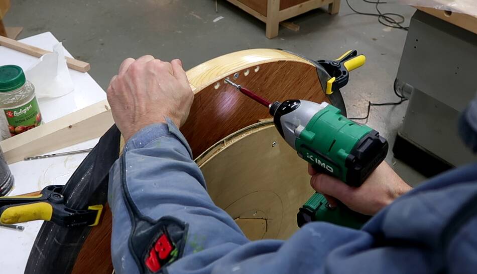 After that, I peeled back part of the tire, drilled pilot holes and