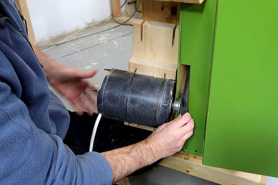 A bigger hole for the pulley would have solved that, but I wanted the enclosure to be fairly closed around the motor because my motor isn't a sealed motor, and it pulls in the cooling air from the front.