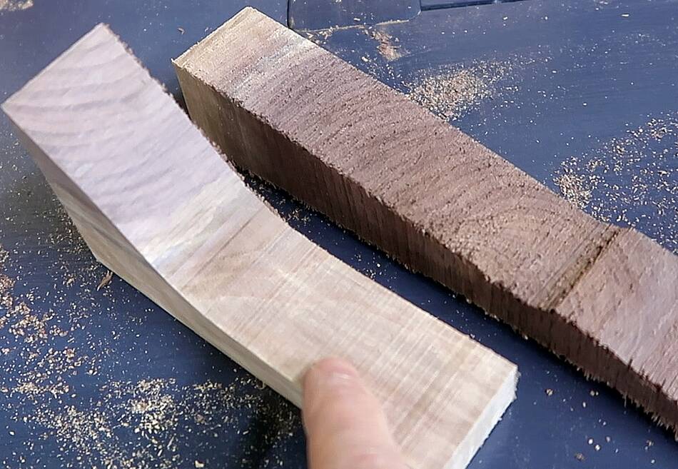 At right, right piece is cut on the 26" saw with the 4 tpi blade,