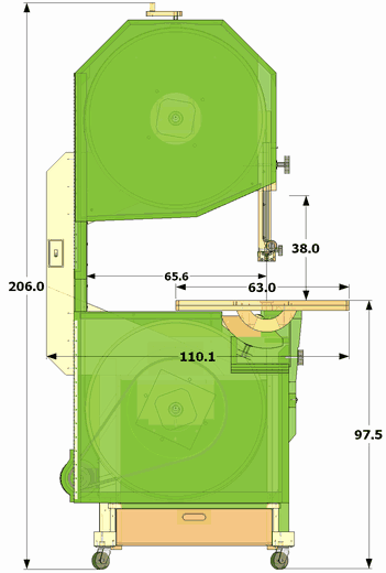 If you intend to use it primarily for resawing, you should aim to have 1hp or 1.5 hp and run the saw faster, but I recommend no faster than 2500 fpm or 750 m/min. At faster speed, centrifugal force can cause the inner tube tire to lift off the wheels. Also, dust and vibration get much worse.