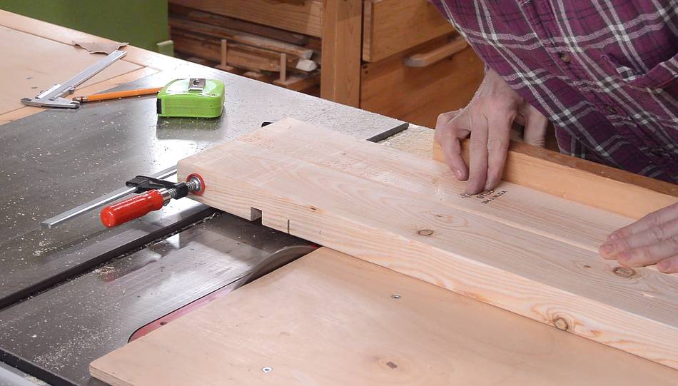 First I made a few cuts in the sides of some 2x4s (two at a time) for a big dado to accept the legs. I cut away just enough to make it easy to remove the rest with the bandsaw later.