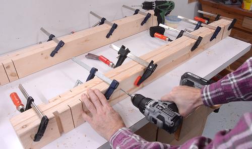 I then glued two 2x4s back to back to form the main beam of the sawhorse. I added