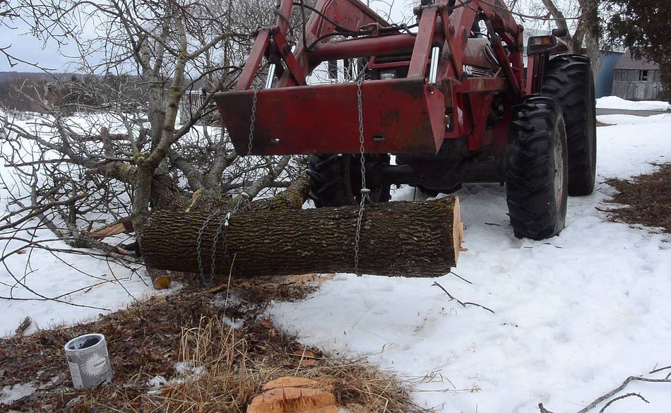 Next I used my big tractor to move the log.