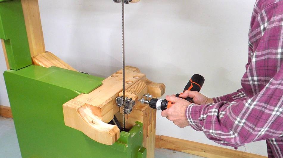 I installed two threaded inserts in the frame so I could screw the blade guide