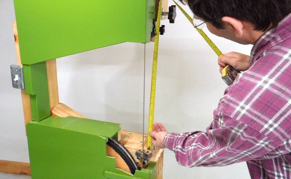 With the upper blade guide all the way up, I now have 44 cm or 17.5" between