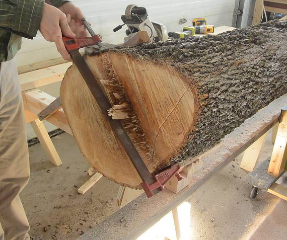 After that, I turned the log 90 degrees with the flat side on the sawhorses,