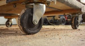 along at a consistent and slow speed. Cheap casters on a rough concrete floor