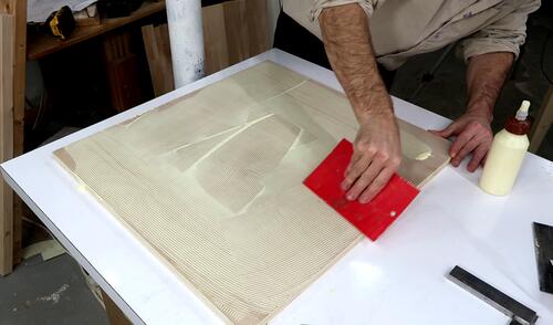 I then glued all my 3 mm thick veneer pieces side to side to make a panel big