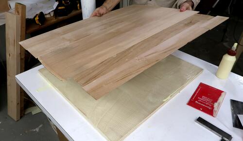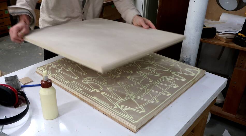 I wanted to use the same pad and clamping cauls to clamp this sandwich together,