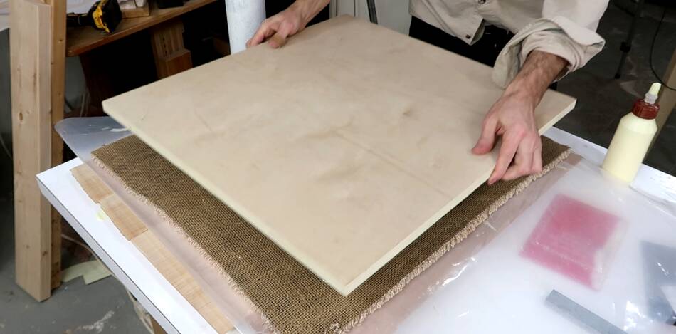 Then a layer of plastic foil, followed by a piece of carpet as a soft pad.