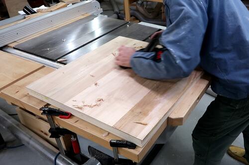 So I milled some veneer to glue to the top. I cut a 21 mm thick maple board