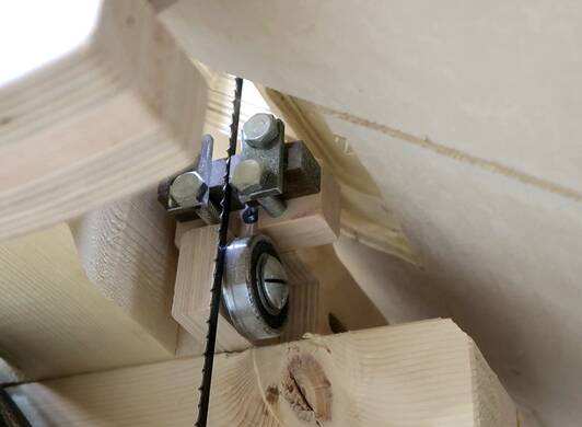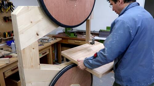 Then placing the table on the bandsaw for the first time. I moved it around a bit