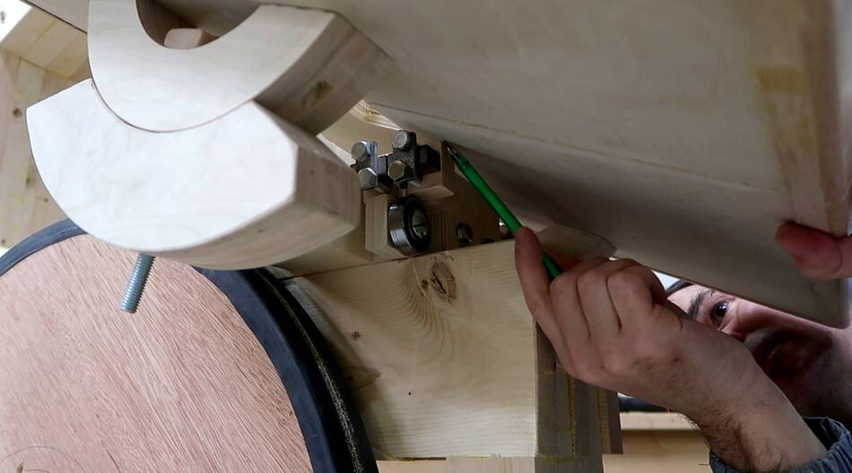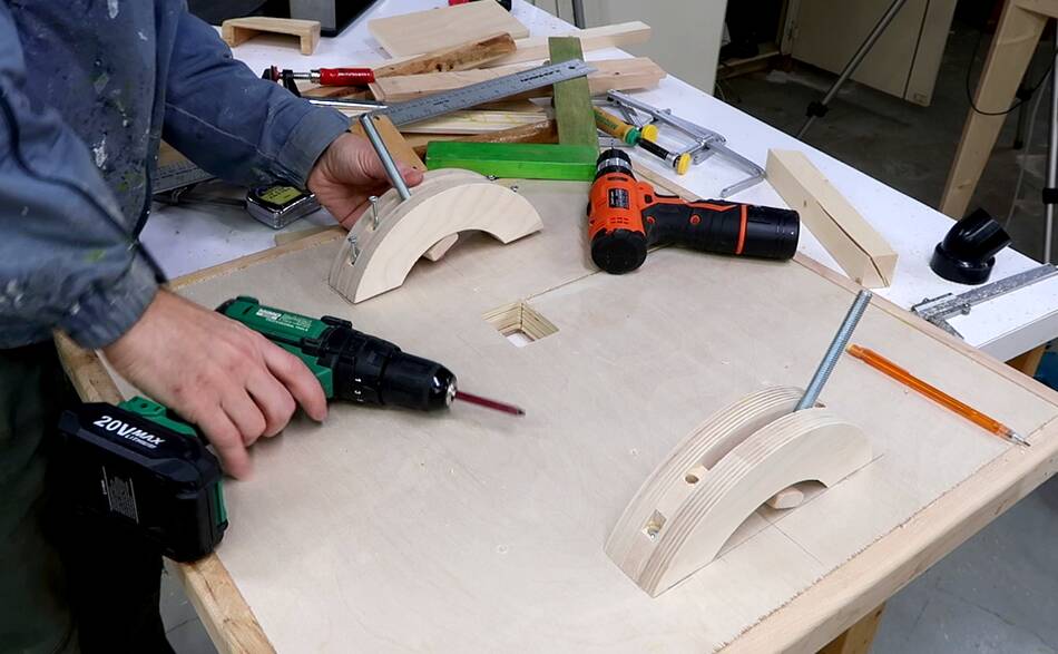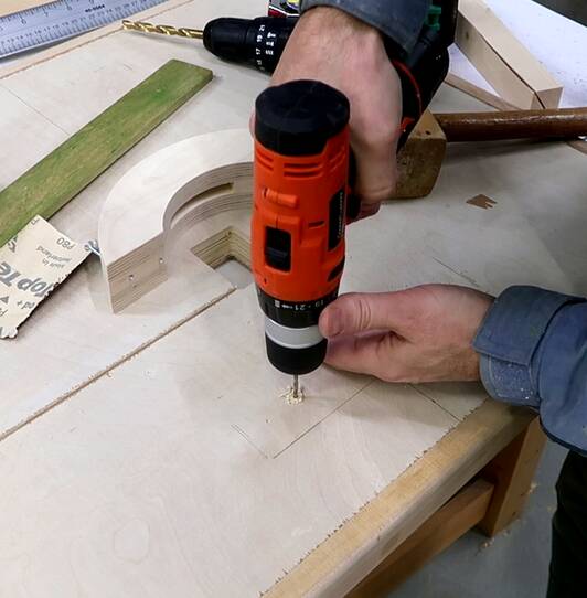 cm, so the bottom of the trunnion should end up 11.5 cm below the table top.