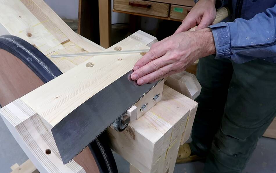 Then gluing in the splines. The splines are cut to a 5" radius to match