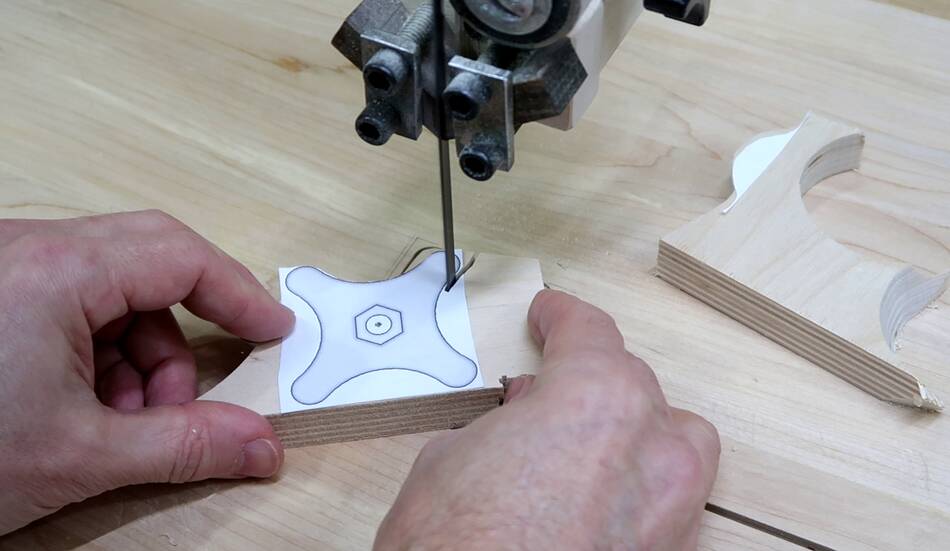 It seems I always made knobs with either three or five points, but when I made these clamps I used some bolts with knobs already on them, and those knobs have four points. I quite liked the feel of the four pointed knobs when turning them, so I changed my knob templates for this saw to be four points instead of five.