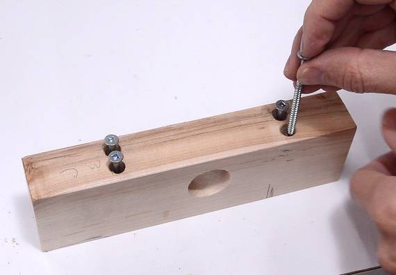 through the plywood and partway into the block to make sure the holes