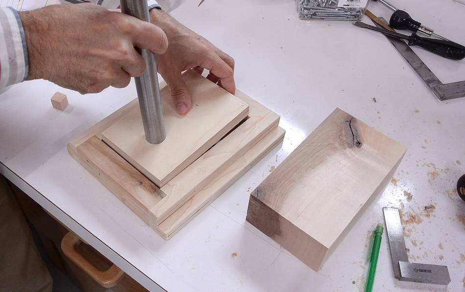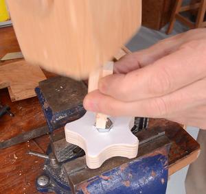 Finally, gluing the block onto the piece of plywood. I have the shaft