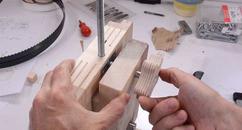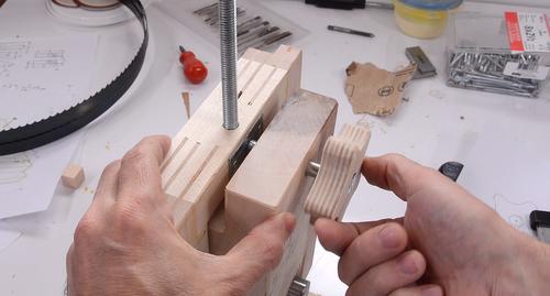 I wasn't thinking when I made this - if you are building a bandsaw, it's not unlikely that you don't already have a bandsaw. So you can either make this a straight bar knob (no bandsaw needed), or wait until the rest of your bandsaw is done and then make this knob.