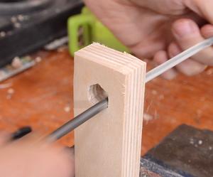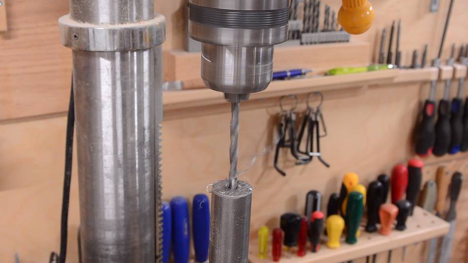 Then drilling the hole, about 20 mm deep, using a low speed on the drill press