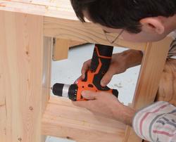 Drilling holes for the screws. The holes are a bit larger than