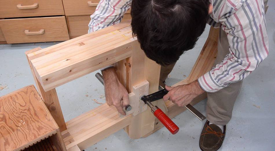 So I clamped a temporary table to the frame (with some blocks of wood to
