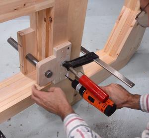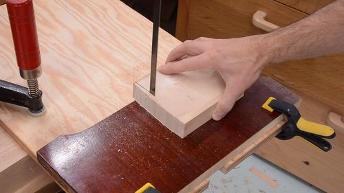 Then clamping a larger block of wood on the far side of the jig to help