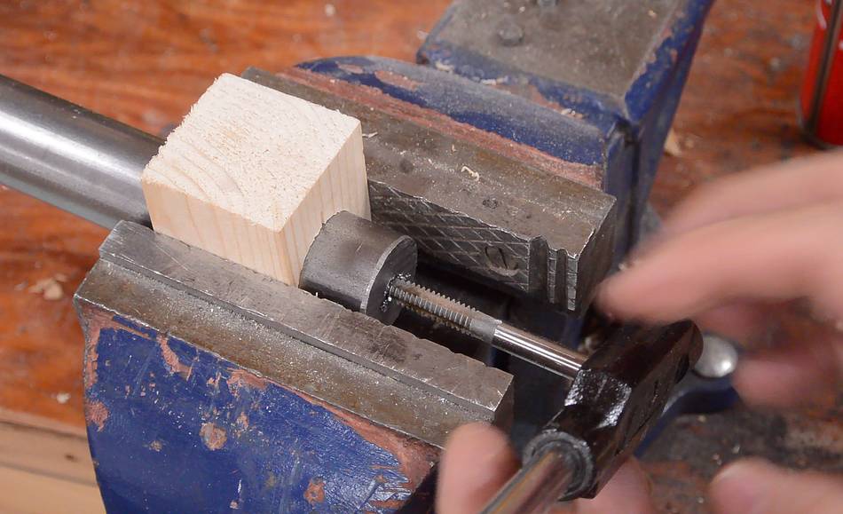 Then tapping the hole. It's a 1/4" screw, and I drilled the hole at 7/32"