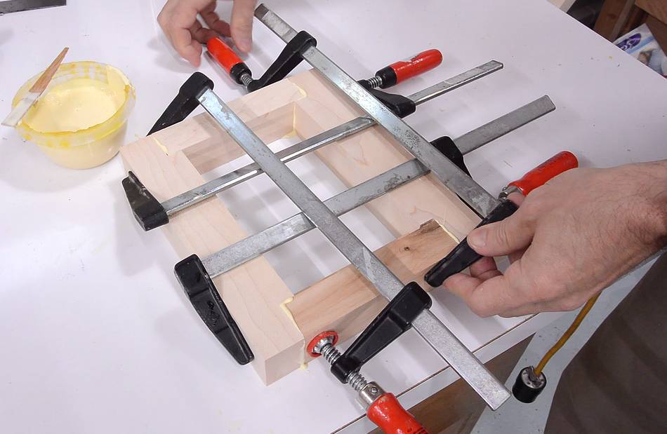 table saw each. Then gluing and clamping it together.
