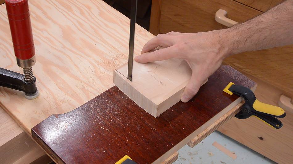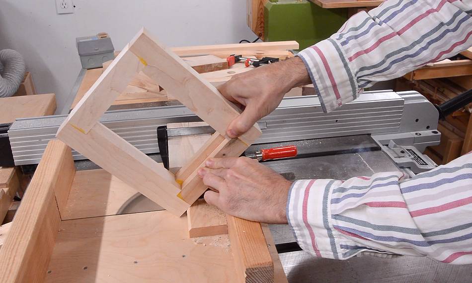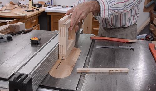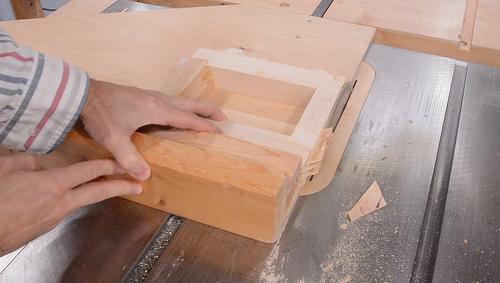 I cut this rabbet by making two cuts on the table saw.