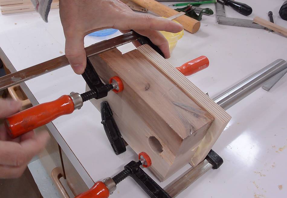 After drilling the hole, I carved the end of it square with a