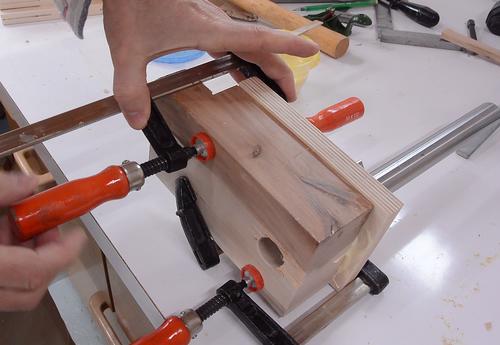 Clamping it in place to check the fit.