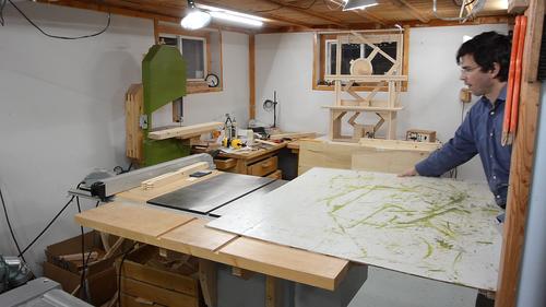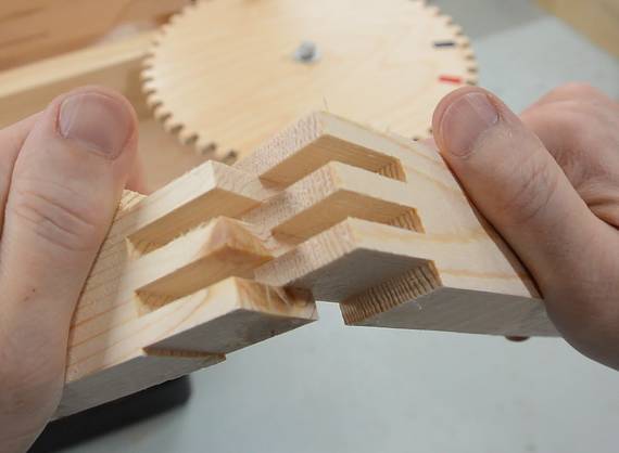 To make it go faster, I stacked two saw blades in the saw to make a