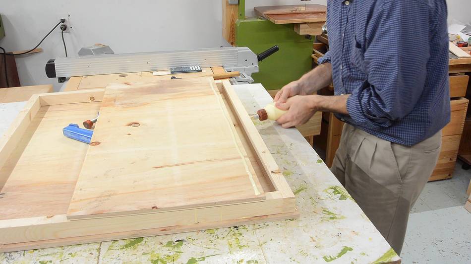 I'm using a thin strip of wood to get the glue in place. If I make a lot