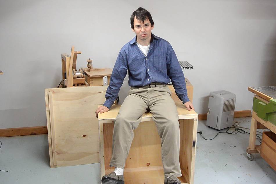 At left, I already have the pieces for the box cut out. I found the plywood by a dumpster a year ago. No doubt it was part of a shipping crate originally. It wasn't very good plywood, though I turned the nicest of the pieces into the backer for the tool holders.