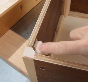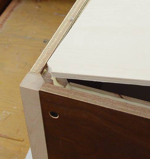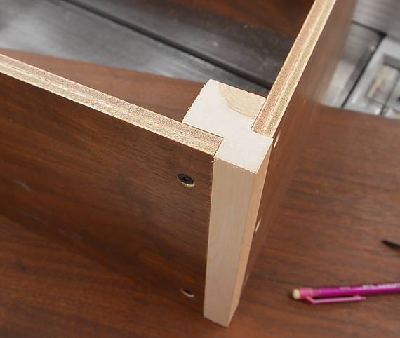 screws in, the plywood is pulled tightly into the corner of the rails.