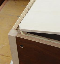 The beauty of this technique is that it's well suited to using relatively thin and pre-finished plywood. A downside is that if you want to use the box to store other boxes, the corners get in the way.