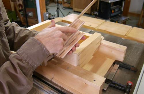 Not wanting to waste space in the drawers, I resawed the thin wood down the